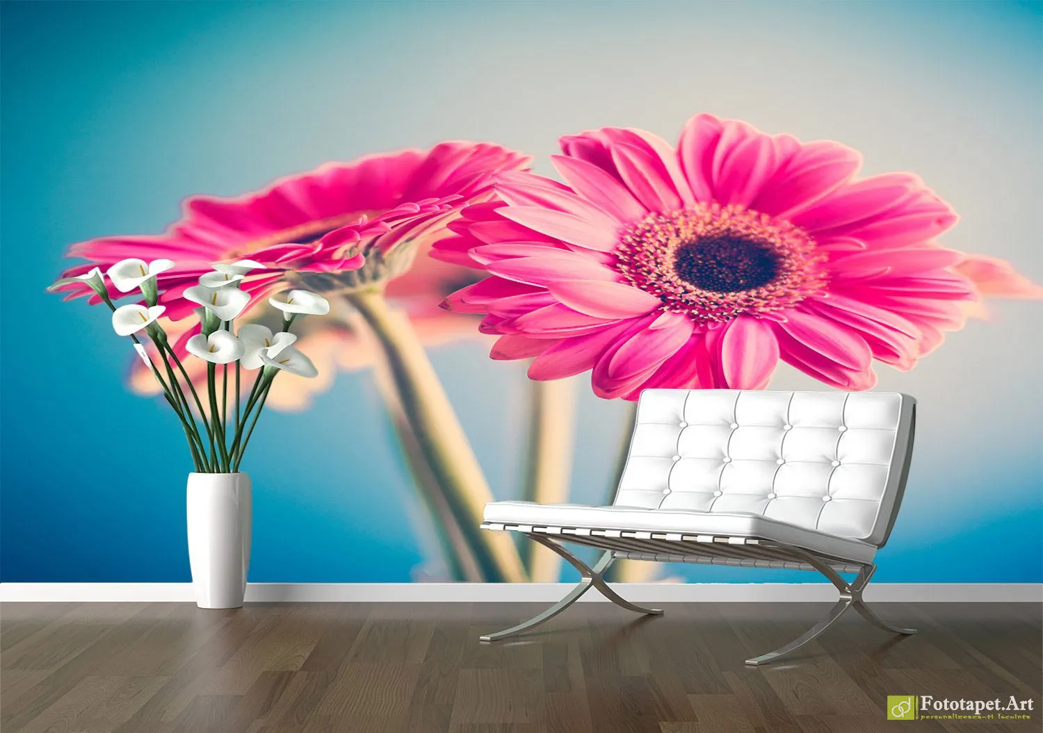 "Magazin online de tapet si fototapet" » Fototapete » Fototapete Natură » Fototapete Flori » Tapet Foto Flori în Romănia - Gerbera pe fundal albastru