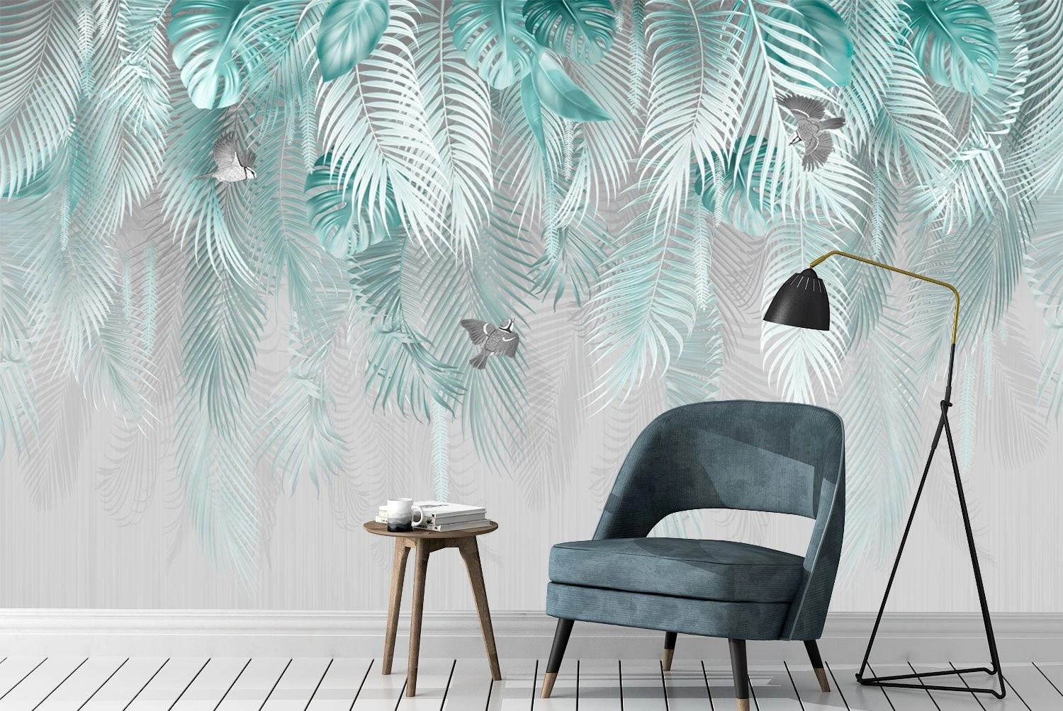 Fototapet Veria, frunze palmier in albastru. Comandă acum tapet bucătărie online, ușor de instalat și rezistent la umiditate.