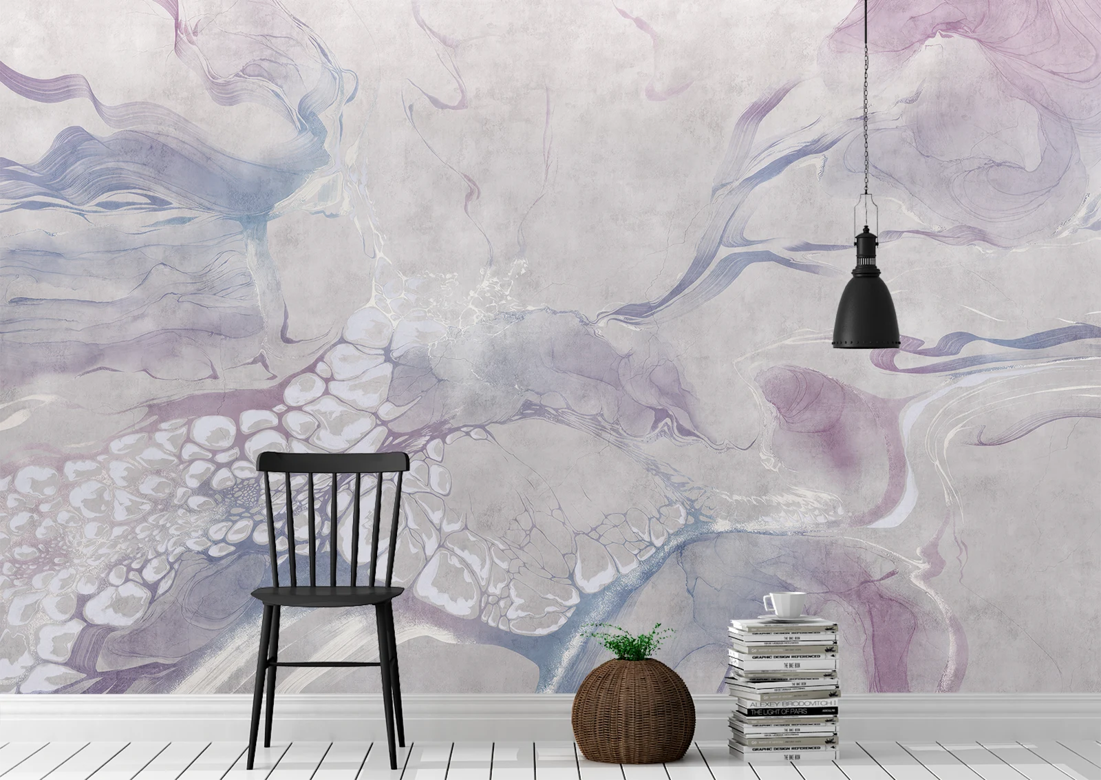 Acest fototapet artistic aduce o explozie de rafinament prin nuanțele fluide de mov, lila și albastru pastel. Formele curgătoare și efectul subtil de marmură creează o atmosferă calmă, elegantă și ușor visătoare. Este ideal pentru interioare moderne, camere de tineret, spații feminine sau colțuri creative. O alegere inspirată pentru cei care doresc un perete accent cu personalitate și stil, fără a aglomera vizual spațiul.
