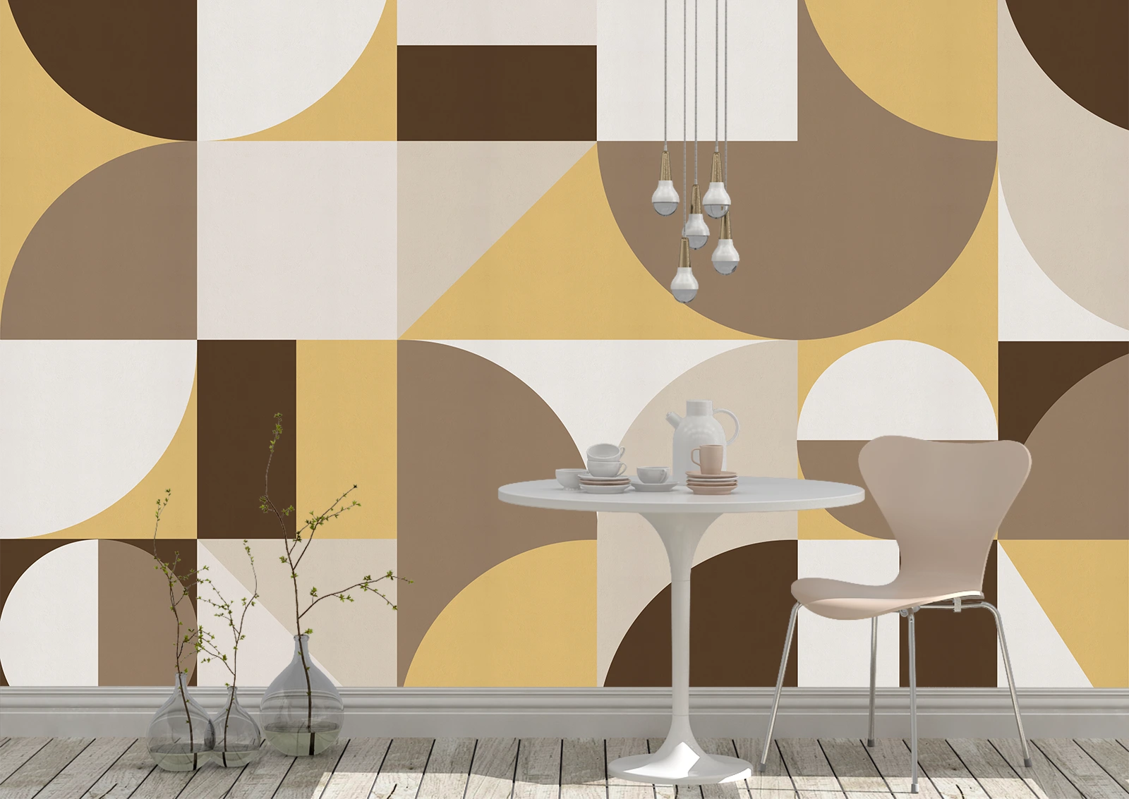 Acest fototapet geometric în nuanțe de maro, crem și bej aduce un aer cald și modern în orice încăpere. Formele abstracte creează un efect vizual plăcut și echilibrat, perfect pentru living, dining sau birou. Designul său sofisticat și liniștit transformă pereții într-un element de decor contemporan, aducând stil și armonie spațiului tău.