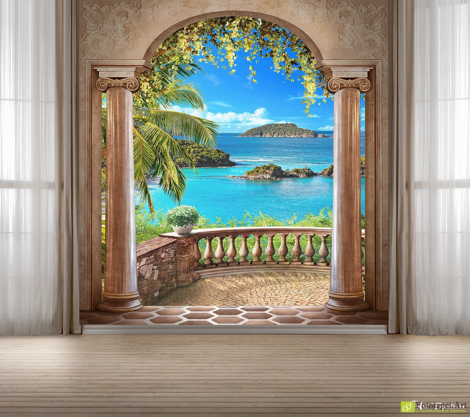 Fototapet Vedere Panoramică Tropicală, Tapet 3D dormitor - creează un sanctuar de liniște. Descoperă pe Art-Tapete.ro.