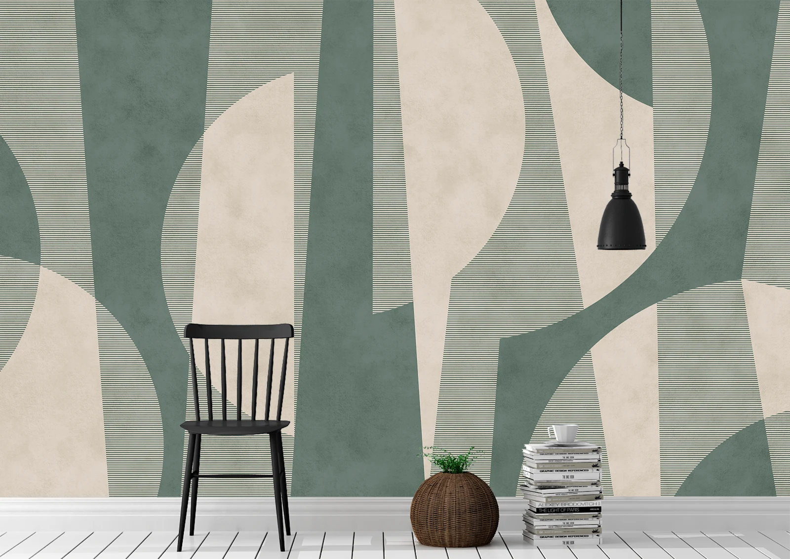 Acest fototapet abstract verde–bej aduce o atmosferă calmă și echilibrată în orice încăpere, datorită jocului subtil dintre formele geometrice și nuanțele naturale. Designul său modern combină linii fine, curbe fluide și zone texturate, creând un efect vizual spectaculos, dar plăcut și relaxant. Nuanțele de verde pastel se împletesc armonios cu bejul cald, transformând peretele într-o piesă decorativă de impact, fără a încărca spațiul.