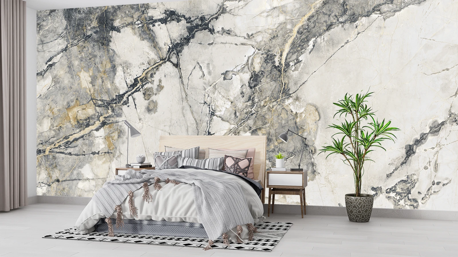 Textura realistă adaugă profunzime peretelui și transformă încăperea într-un punct de atracție discret. Fototapetul se combină ușor cu mobilier minimalist și accente metalice, oferind un ambient armonios și echilibrat.