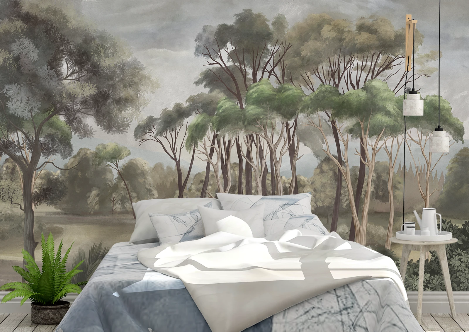 ✅ Tapet pădure artistică pentru decor natural și relaxant. ✓ Atmosferă calmă și design pictural pentru un interior echilibrat. 🚚 Livrare în România. ⭐