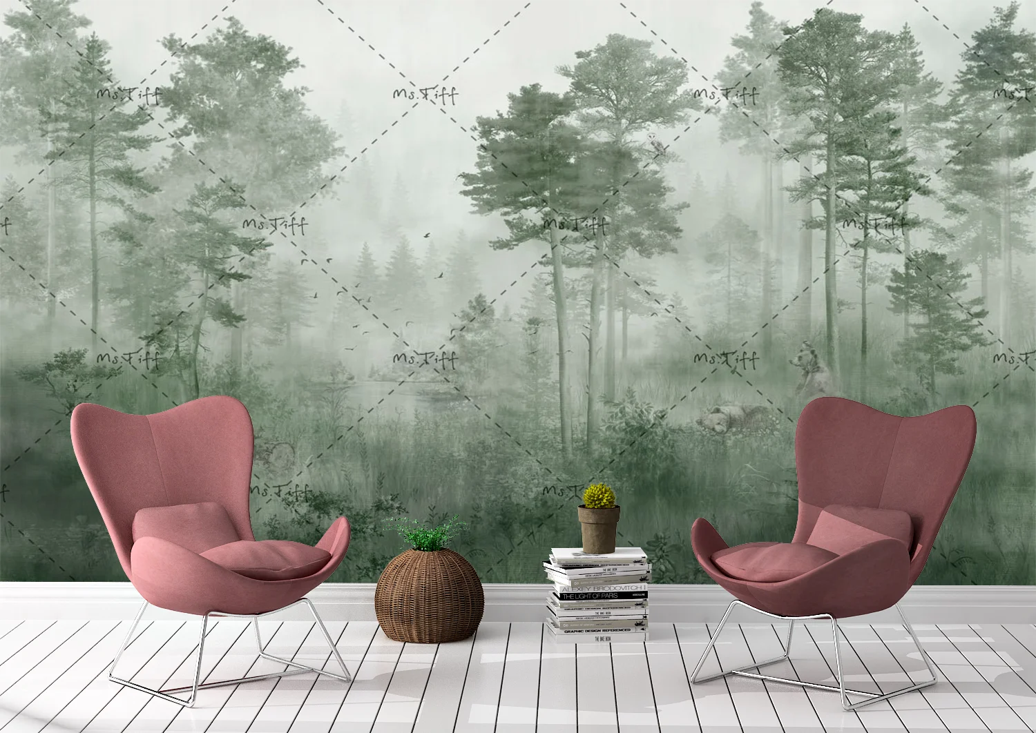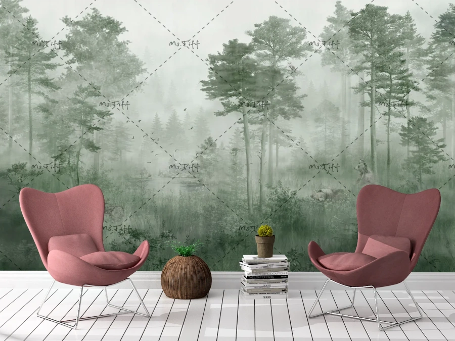 Acest fototapet cu pădure în ceață verde aduce natura mai aproape de tine, creând o atmosferă liniștitoare și echilibrată. Arborii învăluiți în ceață oferă profunzime și un efect vizual relaxant, ideal pentru living, dormitor sau spații de relaxare.