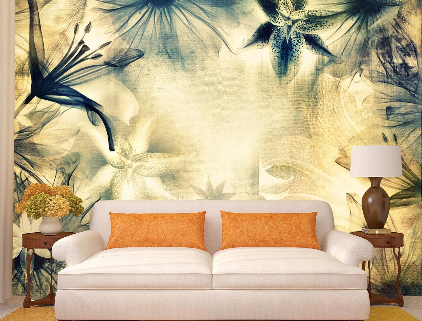 Fototapet Flori albastre pe fundal abstract, Transformă sufrageria cu tapet elegant, potrivit pentru orice stil decorativ.