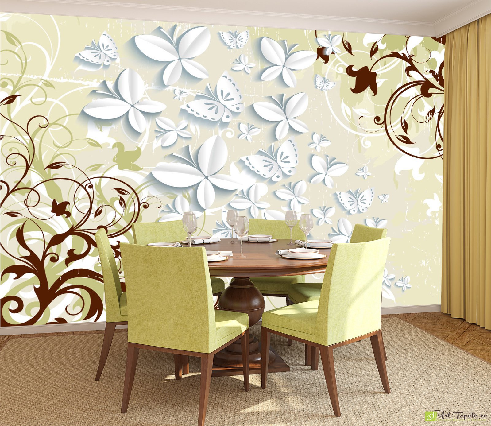 Tapet 3D Fundal deschis cu fluturi, Fototapet decorativ la comanda