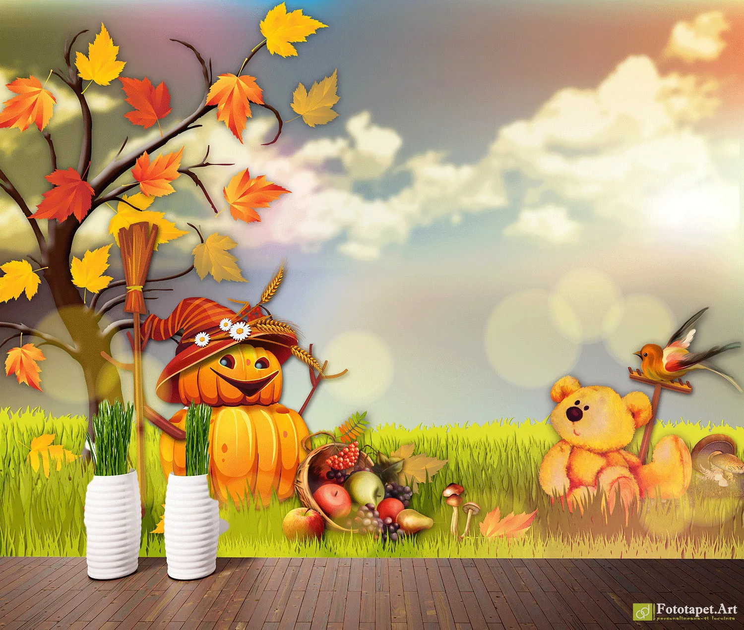 Fototapet copii Bostan amuzant și Ursul, tapet camera copii - Alegeți fototapet camera copiilor pentru un decor unic și atractiv. Livrare rapidă.